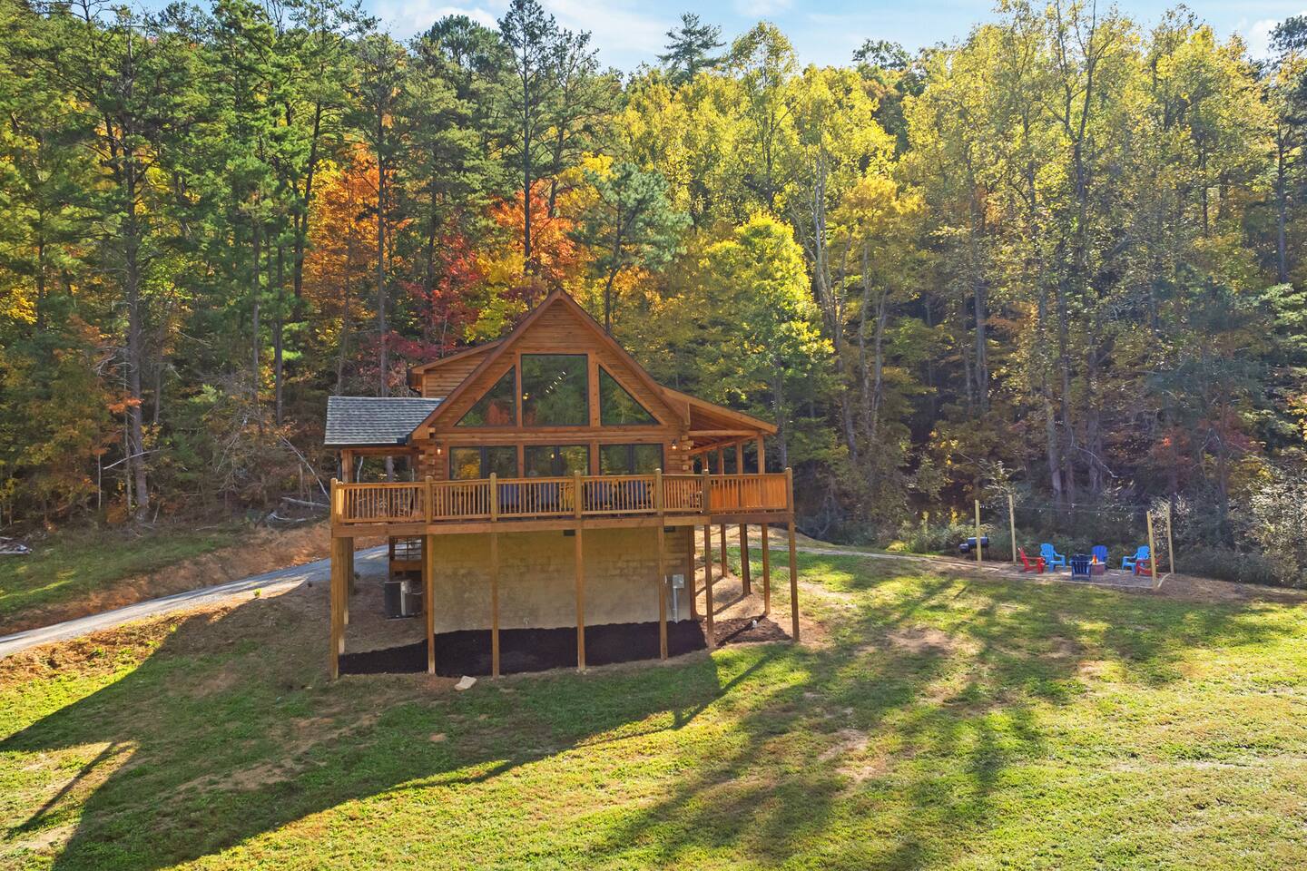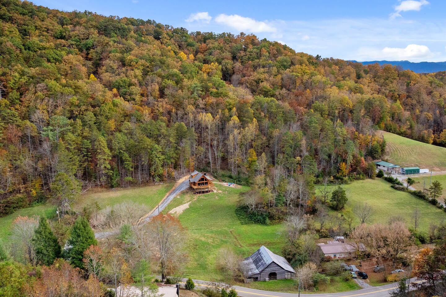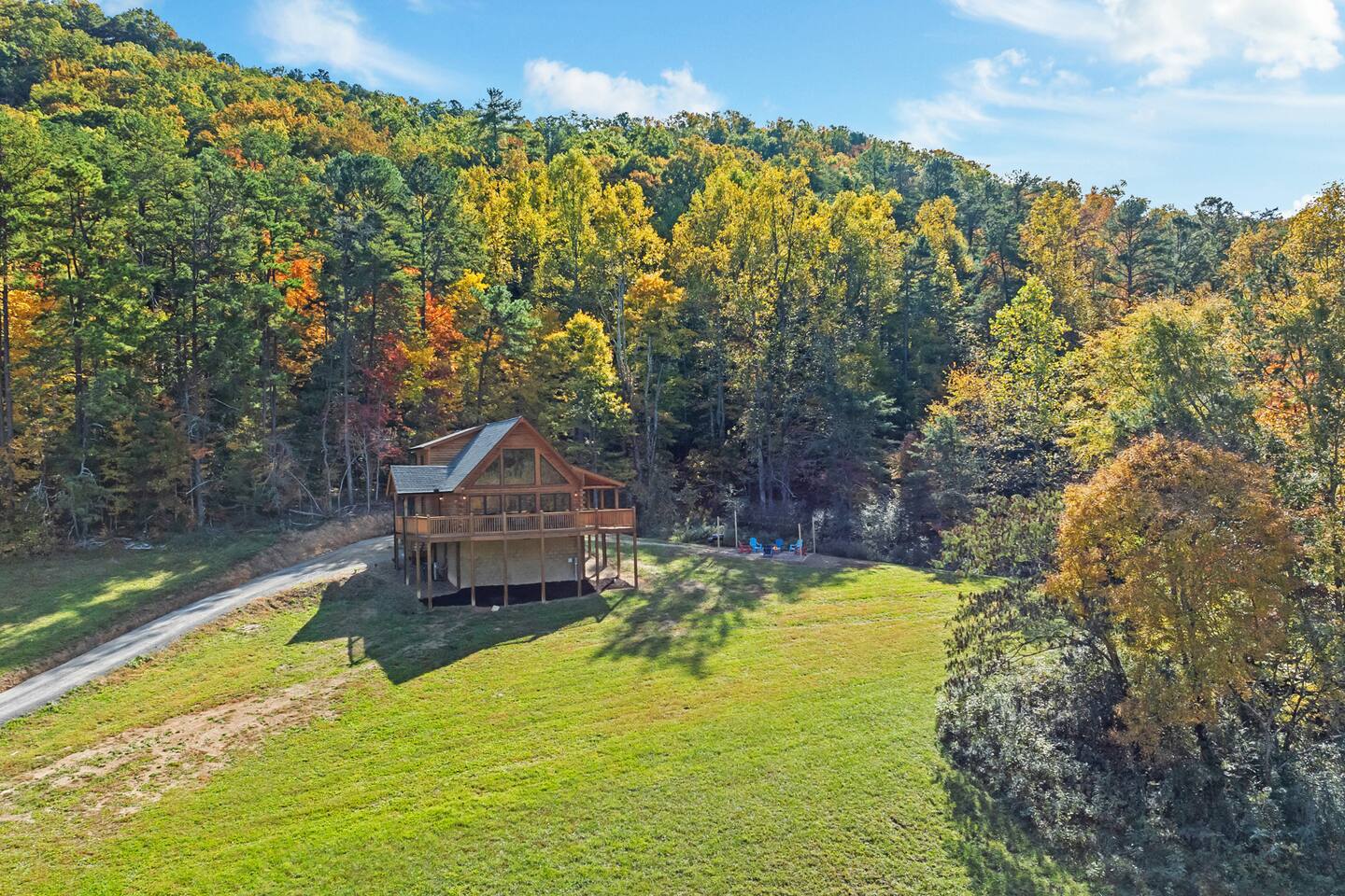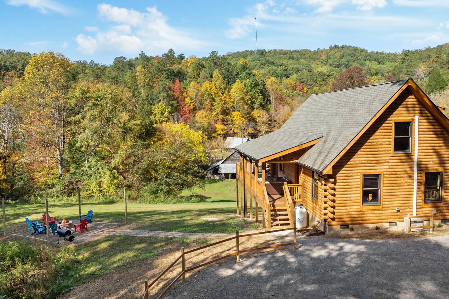 The cabin is located directly east of Pigeon Forge accessible by a clearly lit, paved road to the gravel drive way. Upon arrival, guests have access to the entire cabin including the fire pit on the property as well as the hot tub.