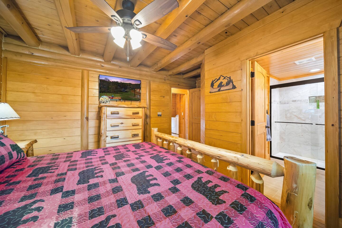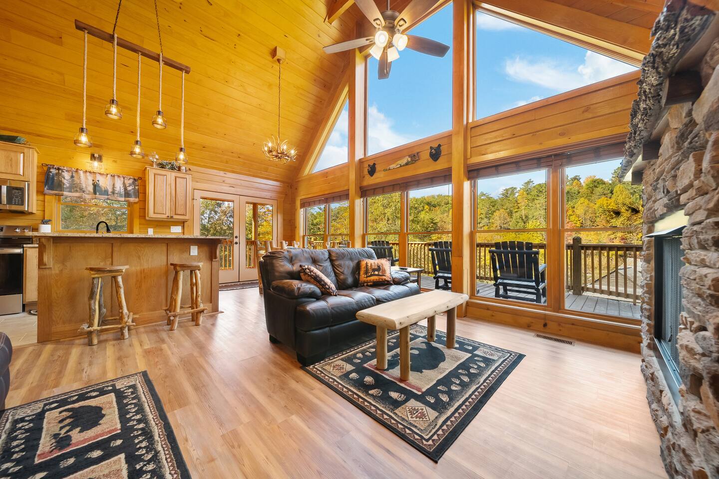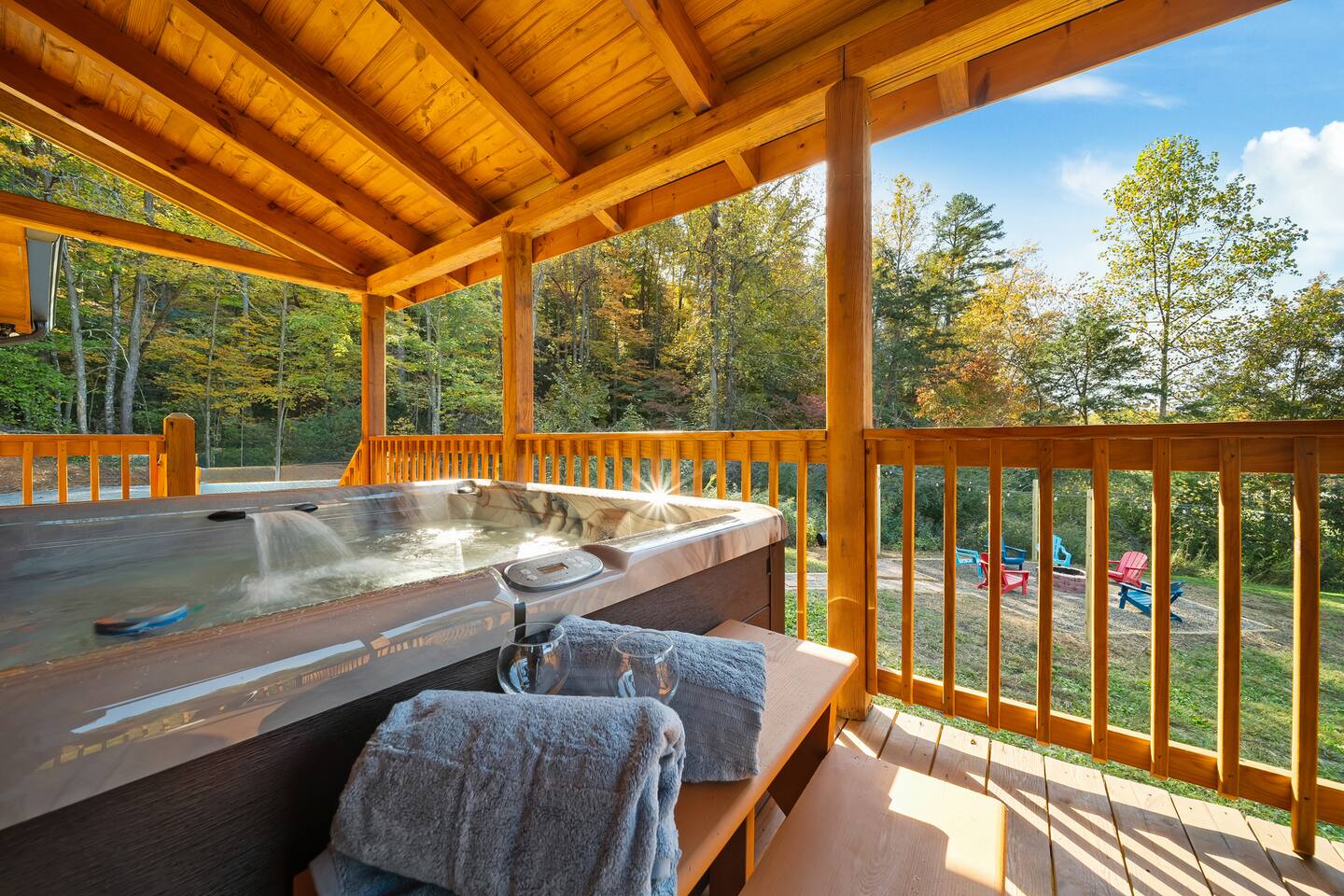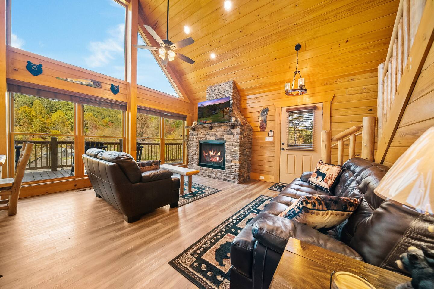The cabin is located directly east of Pigeon Forge accessible by a clearly lit, paved road to the gravel drive way. Upon arrival, guests have access to the entire cabin including the fire pit on the property as well as the hot tub.