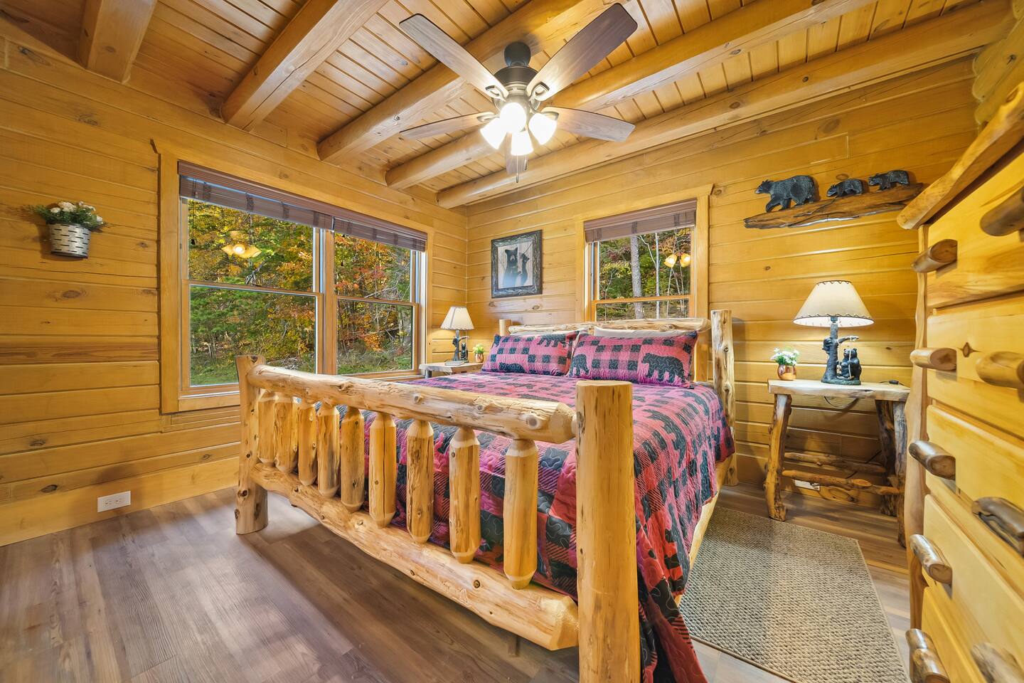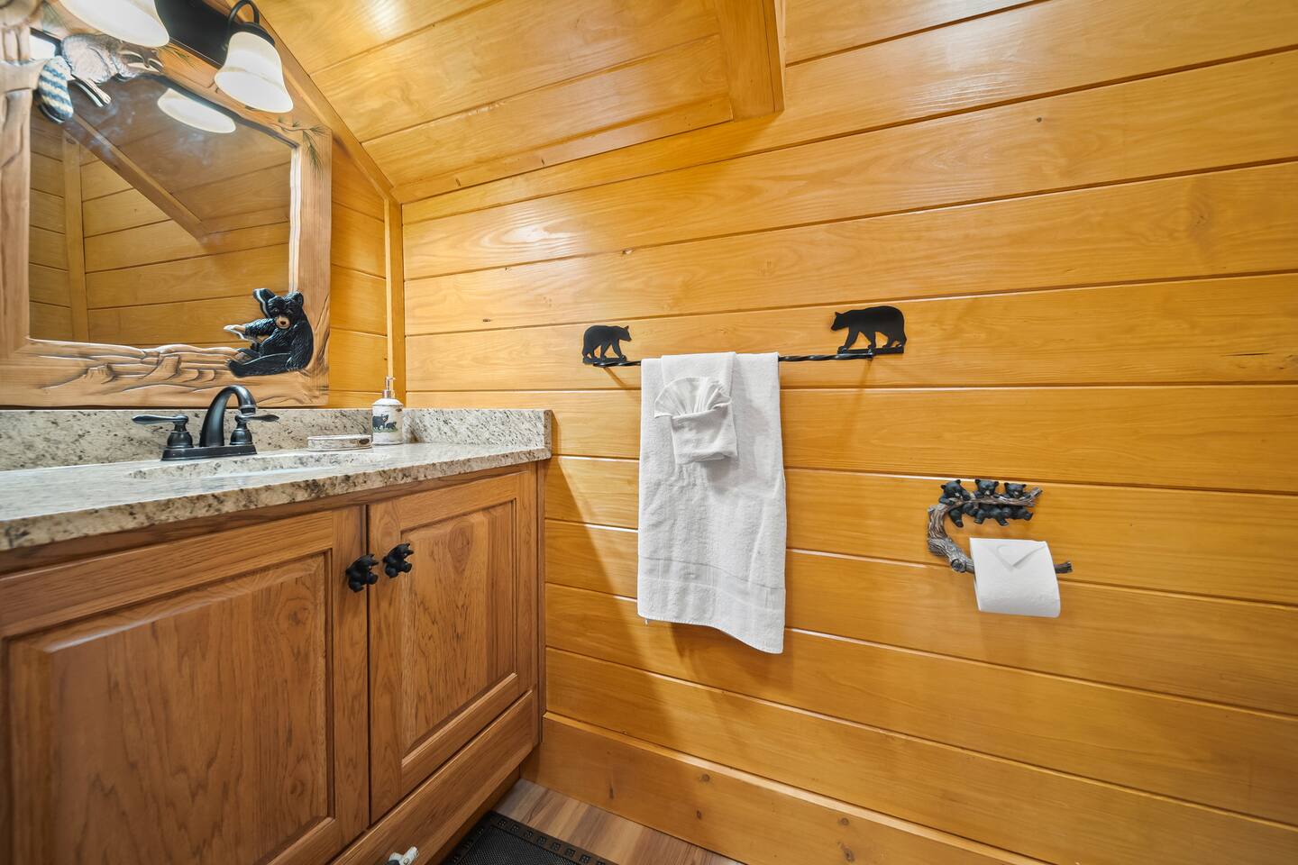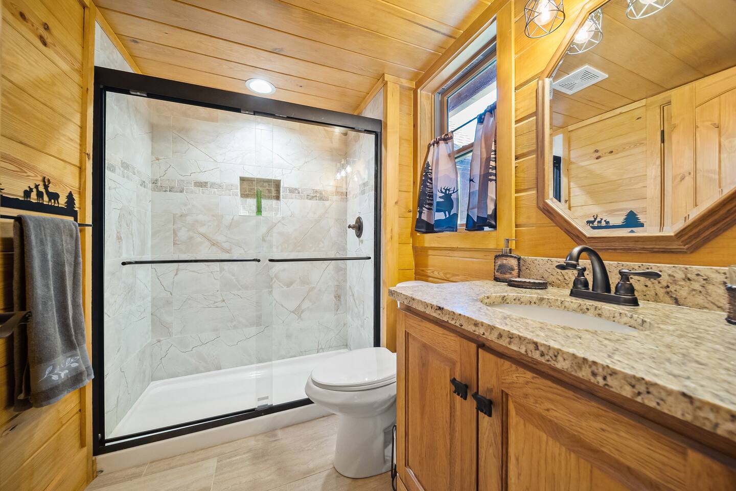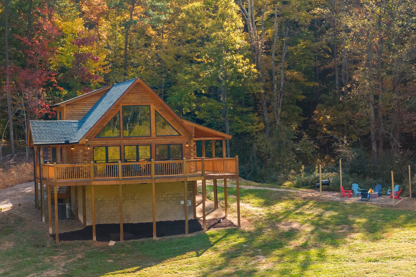 The cabin is located directly east of Pigeon Forge accessible by a clearly lit, paved road to the gravel drive way. Upon arrival, guests have access to the entire cabin including the fire pit on the property as well as the hot tub.