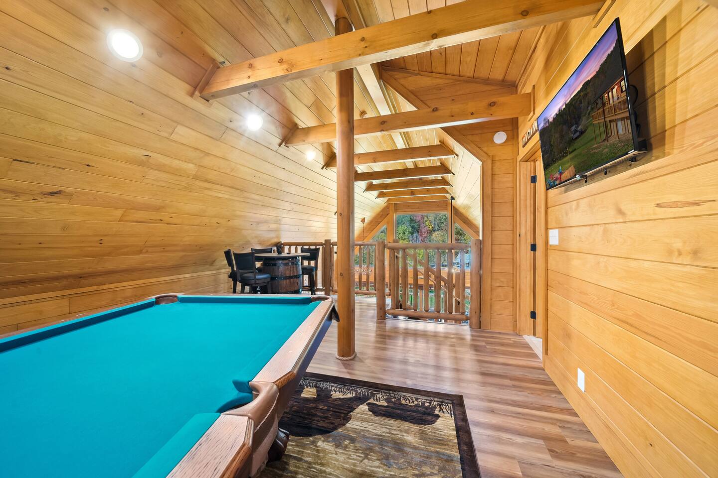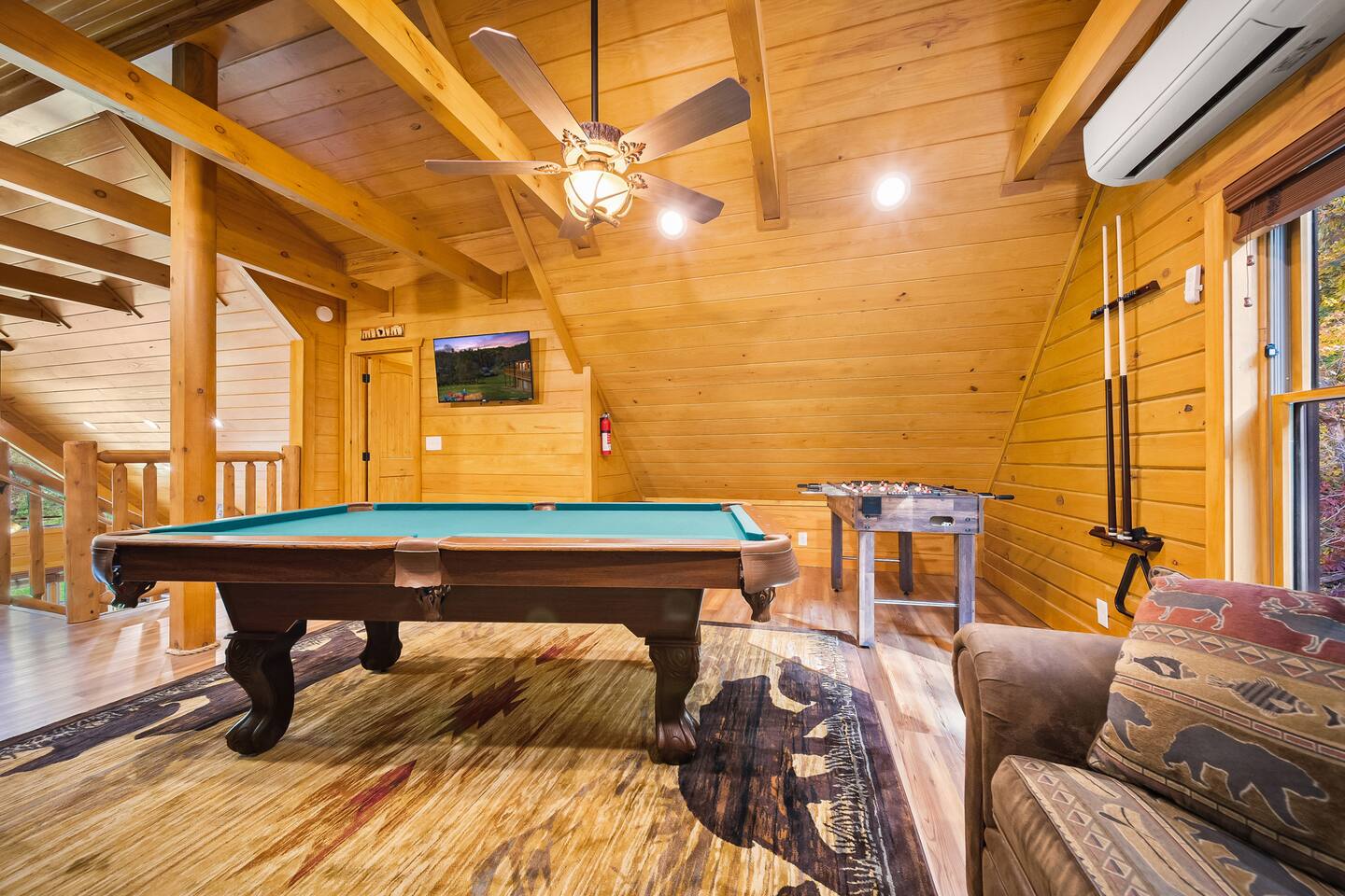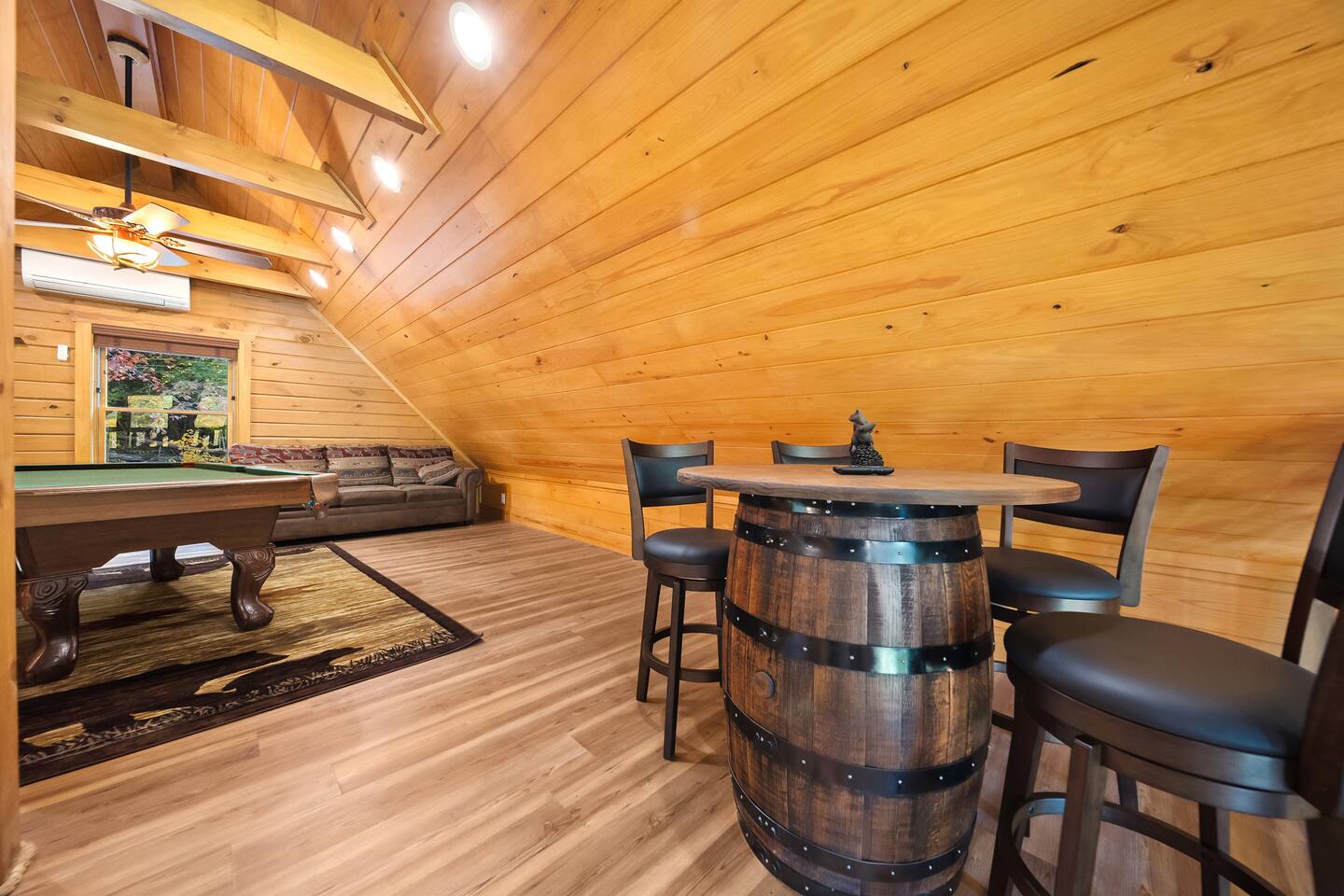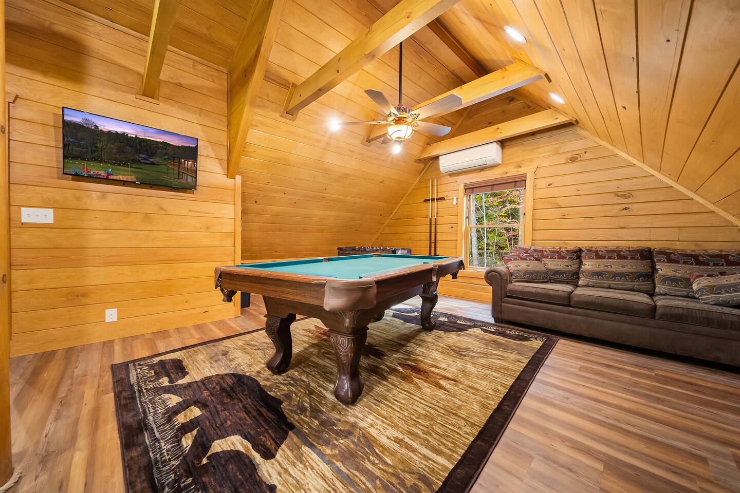 Features: 🛏️ Accommodations: 2 bedroom+ 1 Loft = 3 beds (1 king, 1 Queen, 1 Pullout Couch Queen). 🚽 Bathrooms: 2.5 bathrooms, one tub shower and one standing shower, half bath on main floor ✨Hot Tub: Unwind under the stars in our private hot tub, a perfect way to end your day. 🔥 Fire pit: Roast marshmallows and enjoy the scenic views from the fire pit. 🎱 Game Room: Enjoy a competitive game of pool or a fun board game. Book your stay today and create lasting memories at our Smoky Mountain cabin, where tranquility and adventure meet.